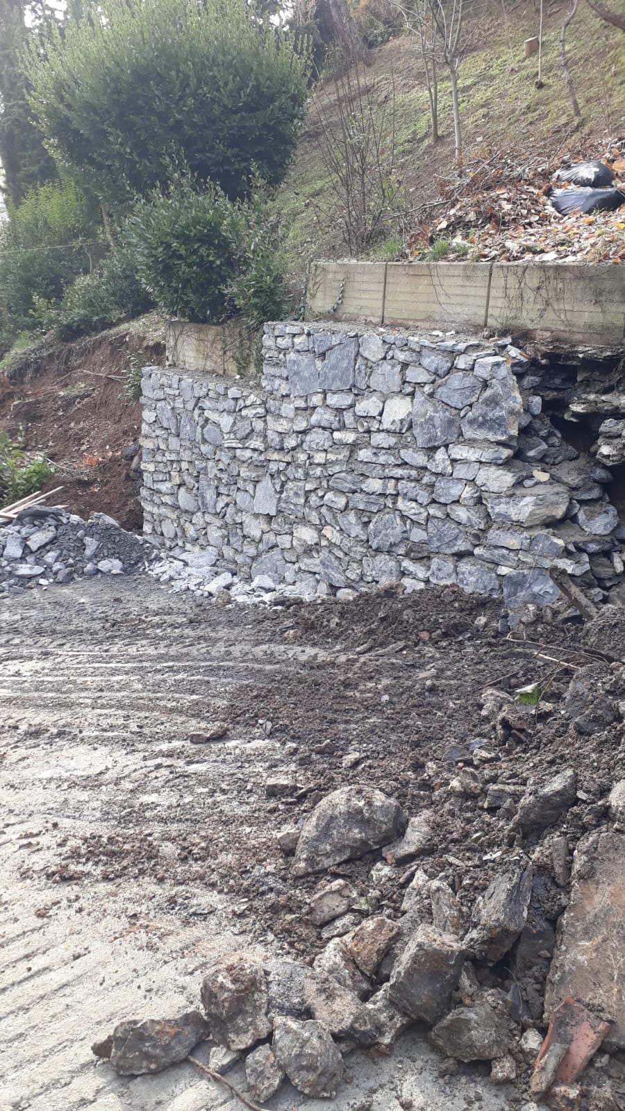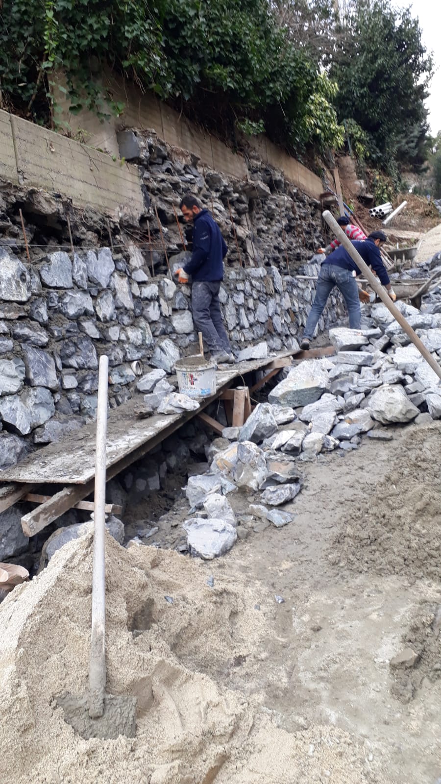 ZAMAN İLE DEFORME OLMUŞ SONRASINDA YIKILAN TAŞDUVARLARIN MOLOZLARININ KALDIRILARAK YENİ BETONARME TEMELLER ÜZERİNE, İHTİYAÇ DUYULAN BÖLÜMLERDE DONATILI OLARAK TAŞ DUVAR İNŞAA EDİLMESİ İŞİ.
